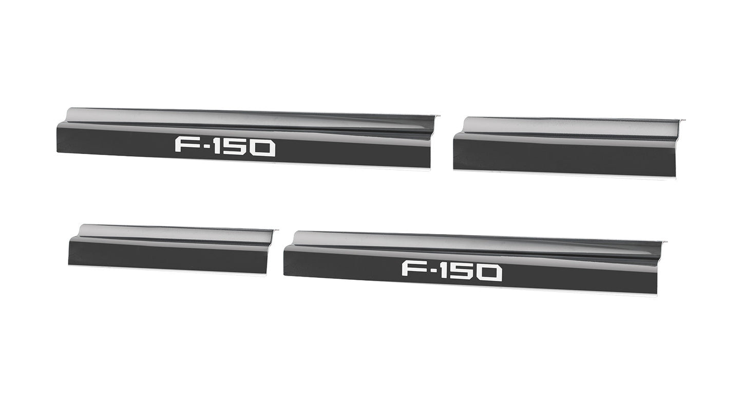 2021-2025 F150 SuperCrew OEM Black Platinum Stainless 4pc Door Step Sill Plates