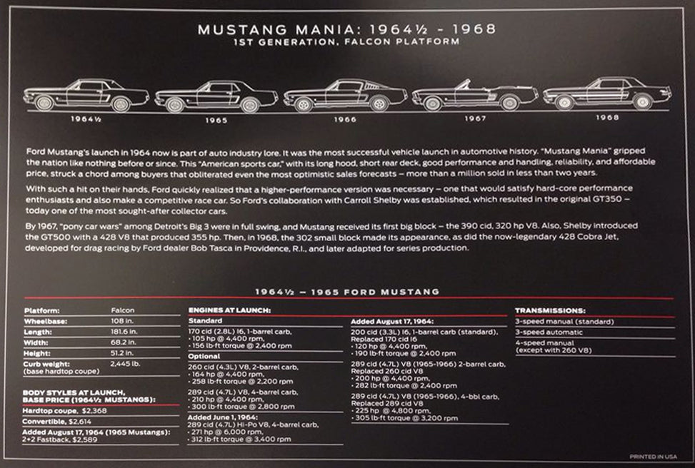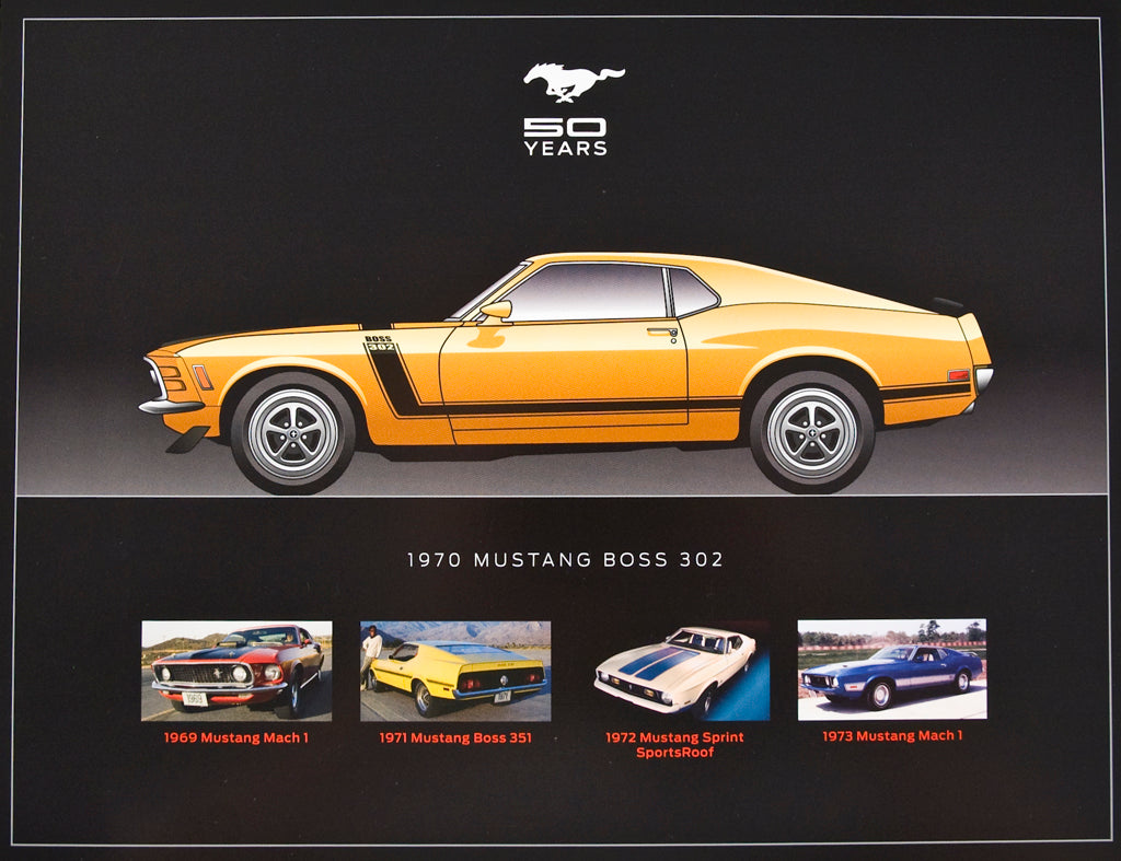 Mustang Fifty Years 50th Anniversary 8.5x11 Hero Spec Collector Cards - Set of 8