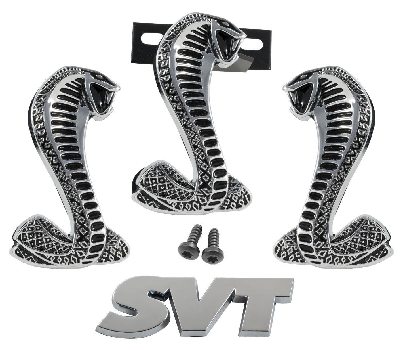 •Includes Cobra grille emblem, Cobra fender emblems, & SVT trunk emblem
