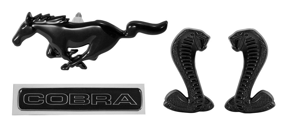 •Includes Grille Insert, Gloss Black Running Horse Grille Emblem, Two (x2) Black Cobra Snake Fender Emblems, & "COBRA" Deck Lid Emblem