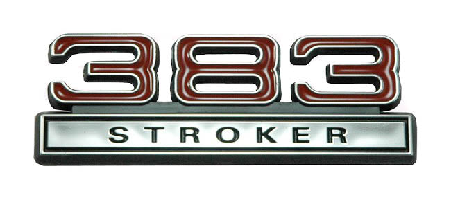 Ford Mustang Red & Chrome 383 Stroker Emblem 4" x 1.5"