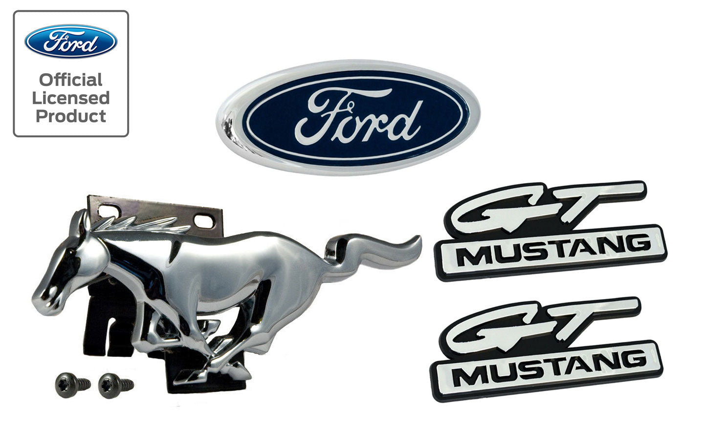 •Includes Running Horse Grille Emblem, Torx Screws (x2), GT Mustang Emblems (x2), & Ford Blue Oval Trunk Emblem