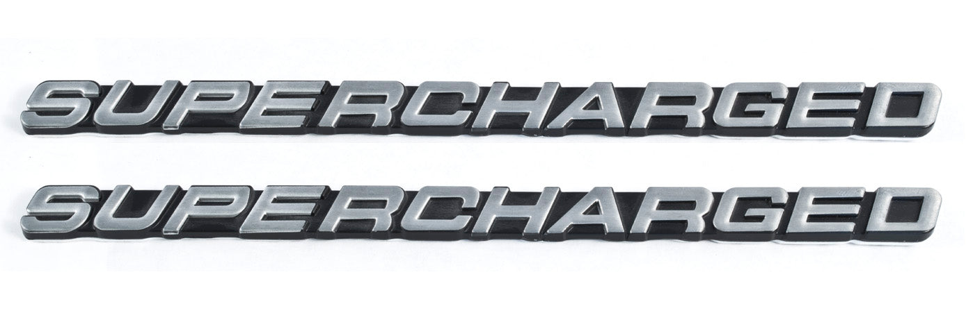 Ford Mustang Cobra Supercharged Silver Metal Emblems 7 3/8" x 1/2" - Pair LH RH