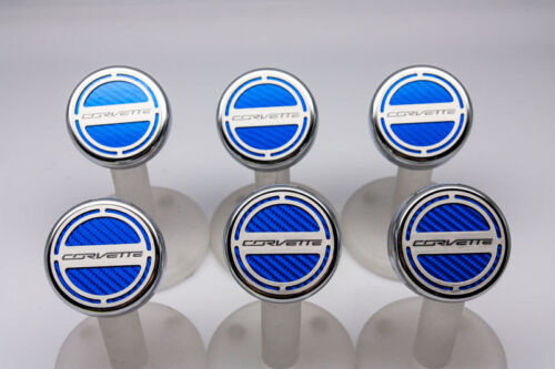 Corvette C7 Z06 & Z51 Manual 6pc Engine Cap Cover Set - Blue Corvette Name Logo