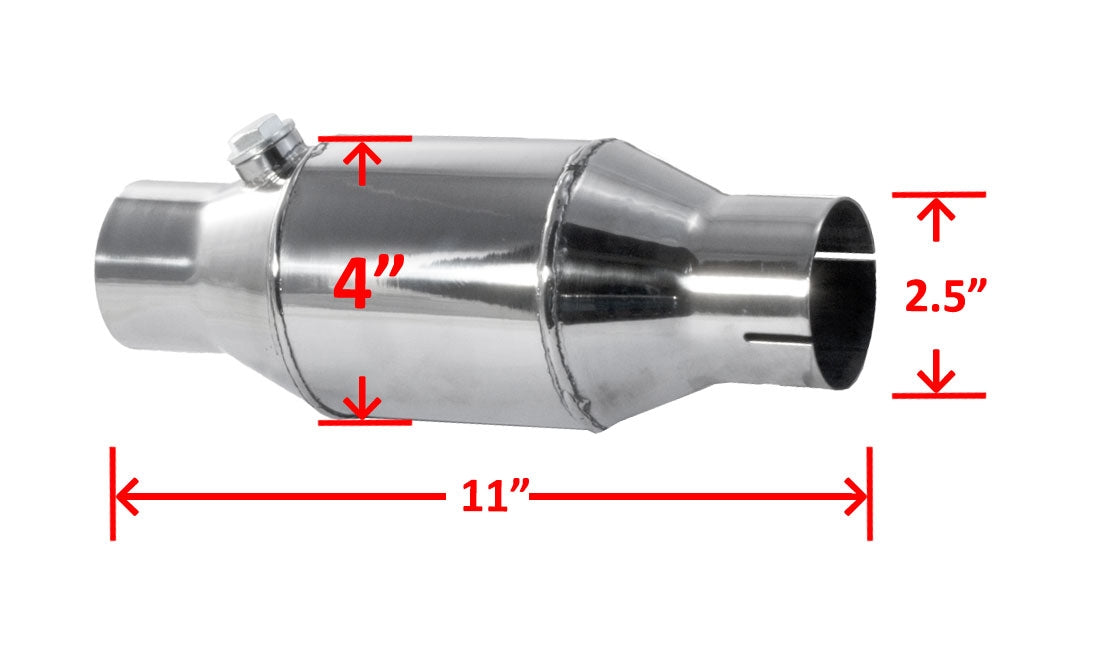 These mini converters are T304 stainless with a durable metallic substrate material, but weigh only 2.5 lbs each and measure only 11 long. Installed, they only take up 7 in length. The 5.0 Litre is rated at 4,500 lbs capacity. Pypes cats and catted X-pipes will pass most states emissions testing procedures. However, check your local and state ordinances for installation and usage regulations.
