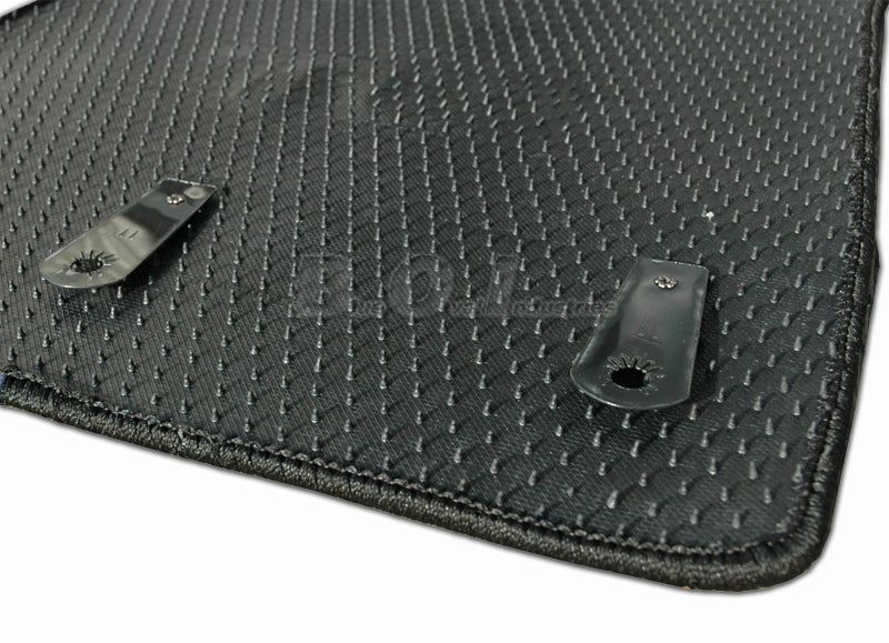 Heavy Plush mats for Mustangs are made with 40 ounces of premuim quality polypropylene yarn. The thick 1/2" carpet pile will add to your driving comfort while reducing heat and dampening road noise. These soil and stain-resistant mats are easy to maintain. Waterproof construction keeps water away from the original Mustang carpeting. The custom cut, the grommet fastener and the nibbed rubber backing all contribute toward keeping the mats in place.