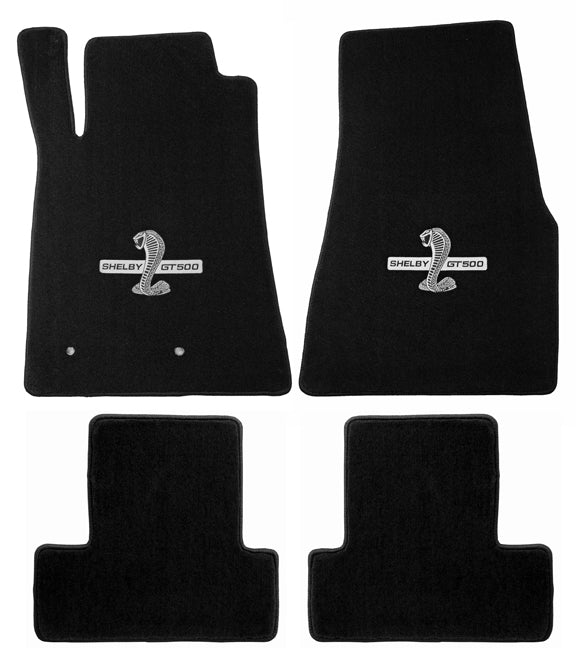 Set of four Heavy Plush Lloyd Mat floor mats with a Shelby GT500 snake logo. Lloyds mats are some of the best floor mats out there! They are high-quality and they look great!
