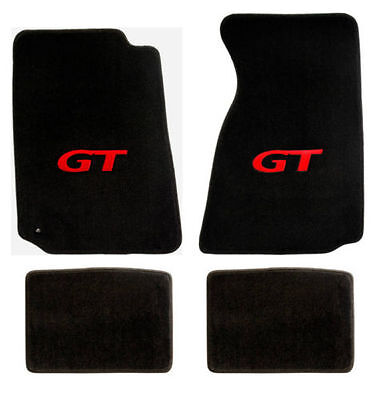 1994-2004 Ford Mustang 4pc Black Front & Rear Floor Mat Set - Red GT Emblem Logo