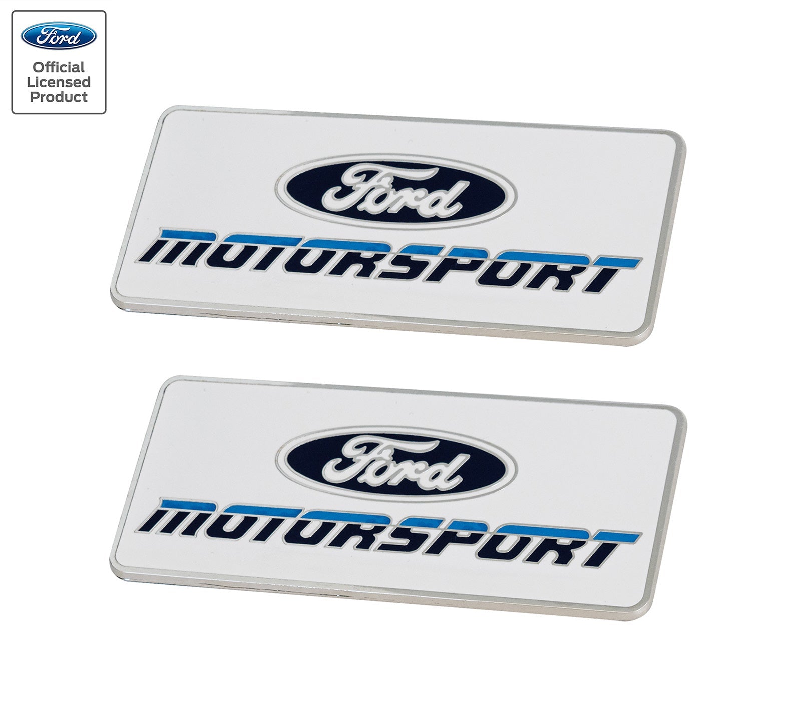 Ford Motorsport 4" Metal Emblems Late 1980s Style Blue 2 Color Logo - Pair
