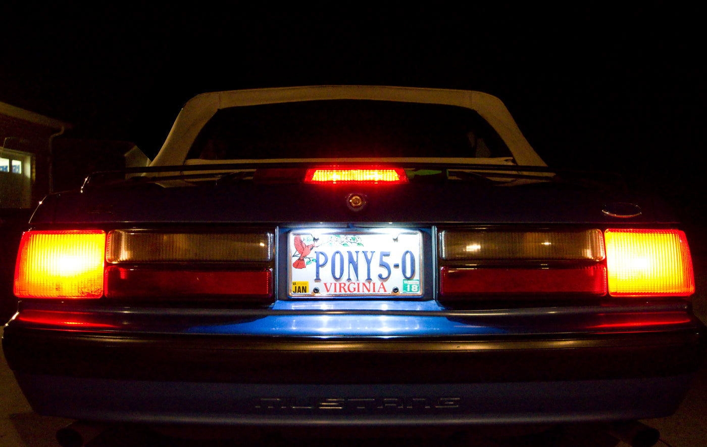 1986-1993 Mustang Convertible Rear Third 3rd Brake Light w/ RED 194 LED Bulbs