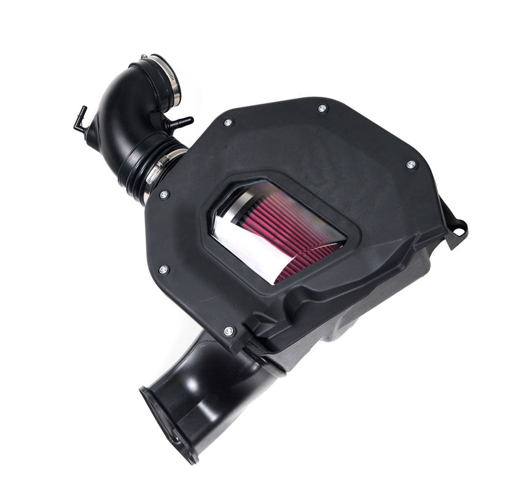 Included in the kit is the air filter with clamp, injection-molded lower airbox/tray with installed EPDM foam hood seal, blow-molded clean air tubes, and all required mounting hardware. The kit utilizes all factory emissions and vacuum lines. Factory mounting locations and hardware are utilized to allow for quick and easy installation.